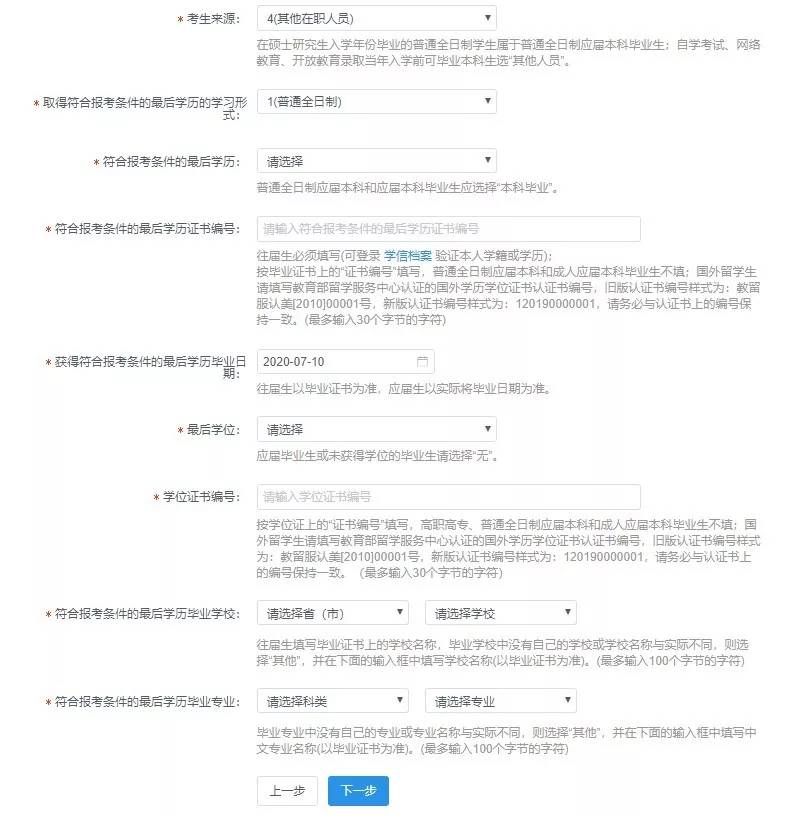 填写实际符合报考要求的学历信息