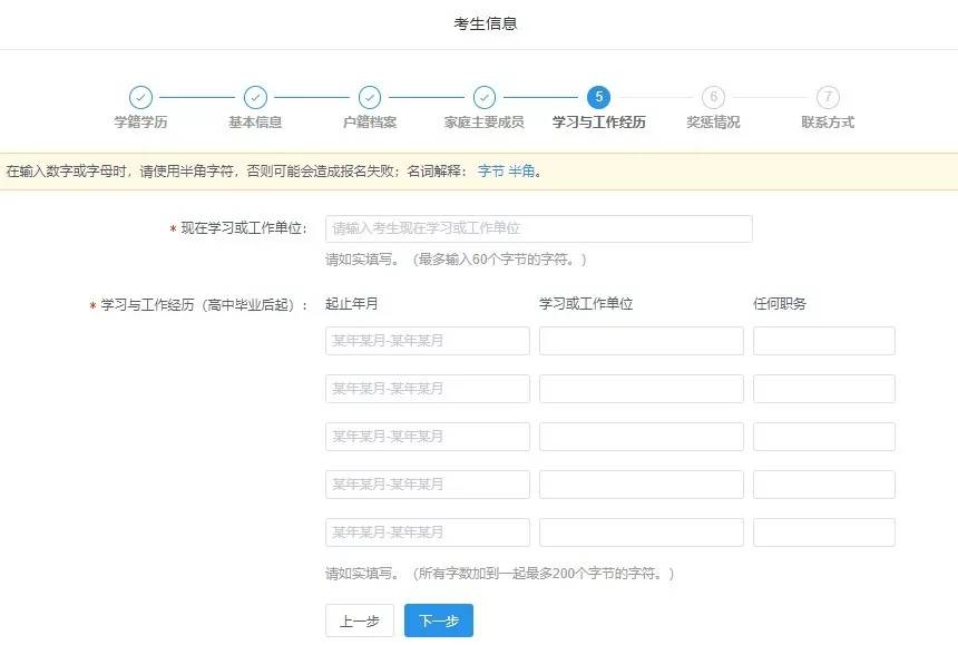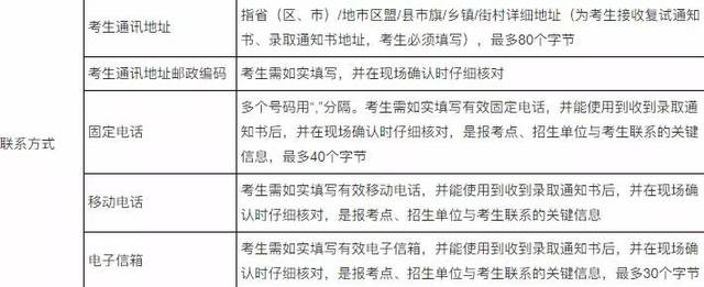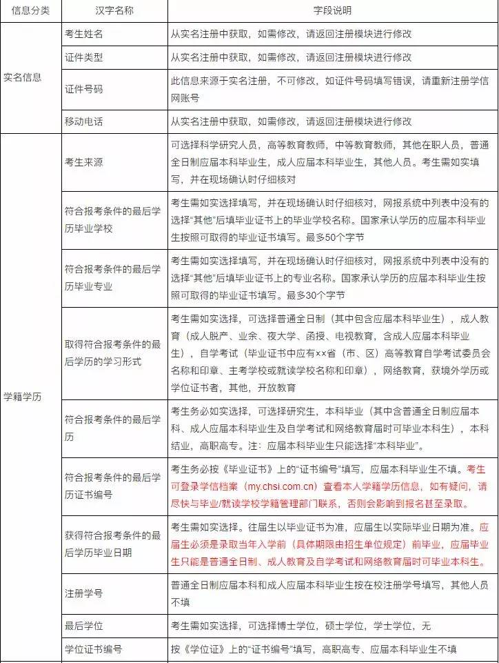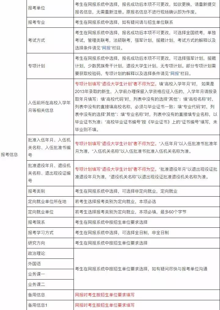 报考信息填写说明: