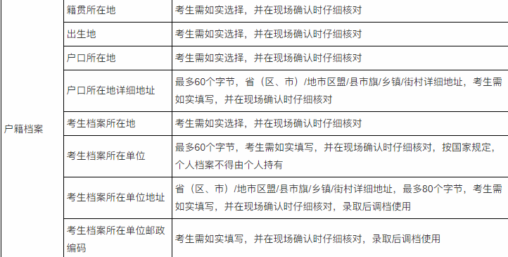 ①户籍所在地或人事档案所在地为北京地区的考生,须选择大学的考点办理网上报名和确认手续。户籍地址和人事档案存档单位及地址须和报名信息填写一致,确认时需要提交户籍卡或人事档案存档证明(须加盖存档单位公章)。