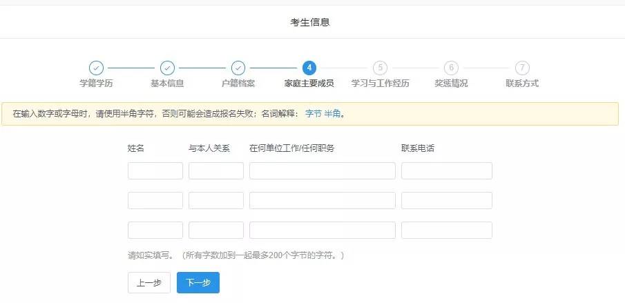 7.家庭主要成员填写