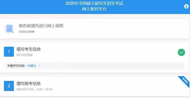 10月05日——10月25日 每天9:00-22:00,登录中国研究生招生信息网完成报名和缴费。