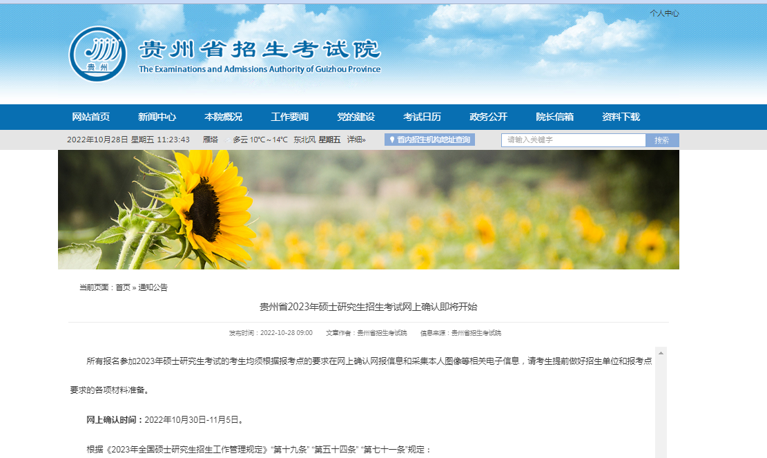 贵州省招生考试院发布的《贵州省2023年硕士研究生招生考试线上确认即将开始》的内容如下: