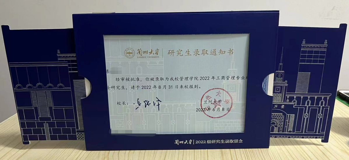 您现在的位置:洪桥教育 > 上岸喜报> 兰州大学MBA录取通知书